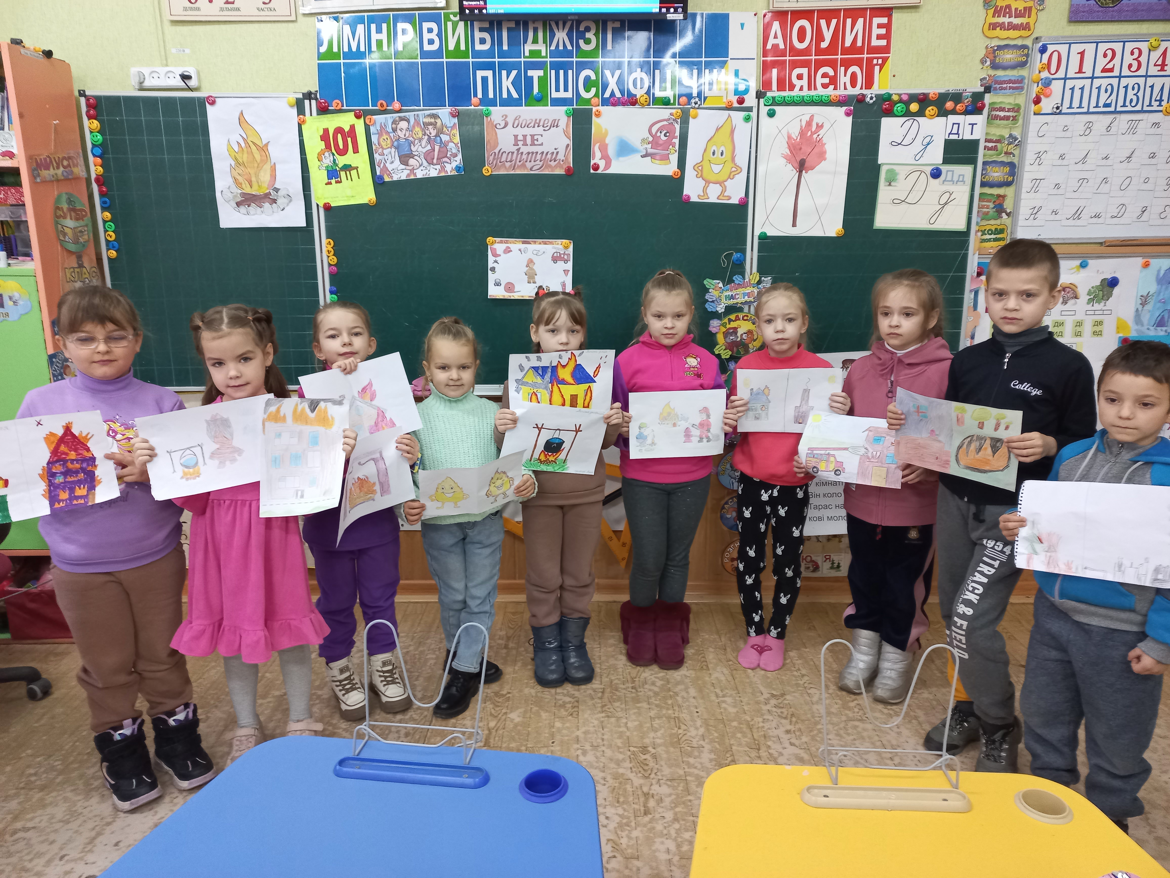 У першому класі було проведено урок-гру: "Вогонь: друг чи ворог?". Під час заняття учні у групах обговорювали зображене на тематичних картках. Ділилися думками та враженнями, робили висновки, що треба знати, щоб не сталося пожежі та як протидіяти у такій ситуації: